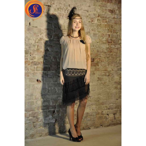 Юбка черная, бахрома и бежевая блуза 30-е