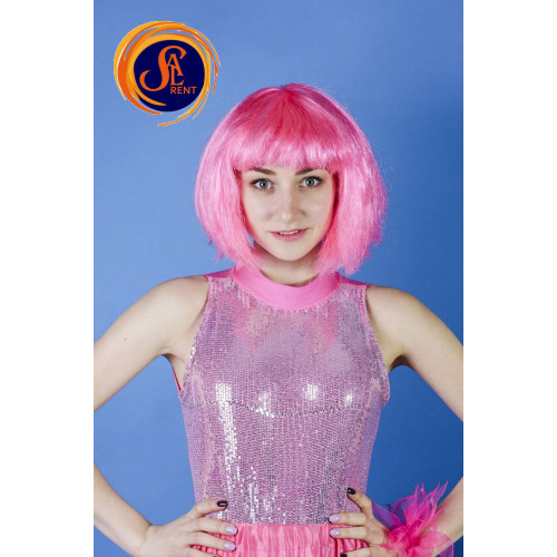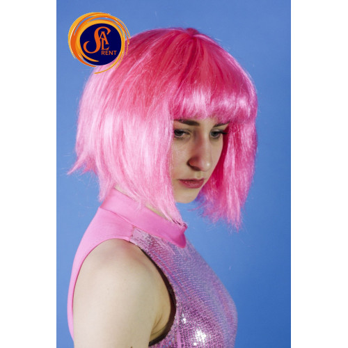 Перука рожева,каре з прямим волоссям.